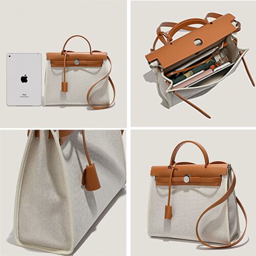 • Material: Genuine Leather, Canvas Fabric, Polyester Lining.
