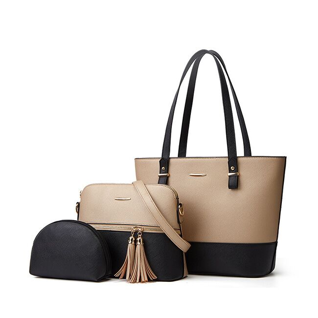 Classic Fashion Women PU Leather Handbag Set With Tote Bag, Messenger Bag, and Clutch Bag.
